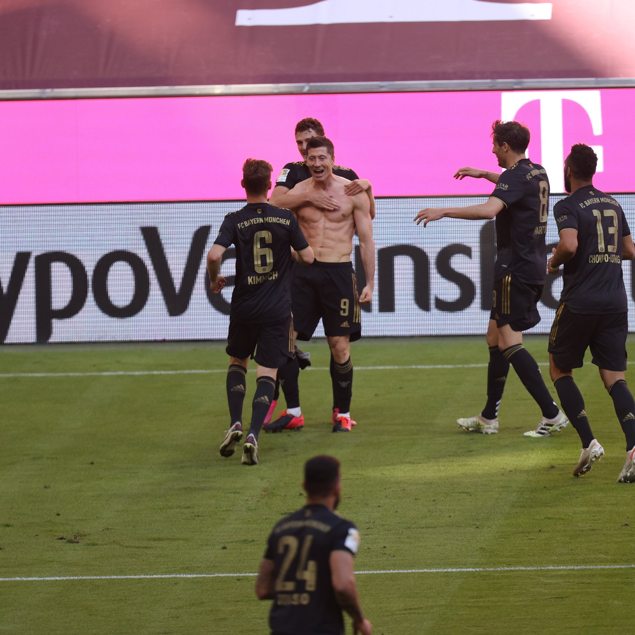 Lewandowski celebrates after scoring his side's fifth.